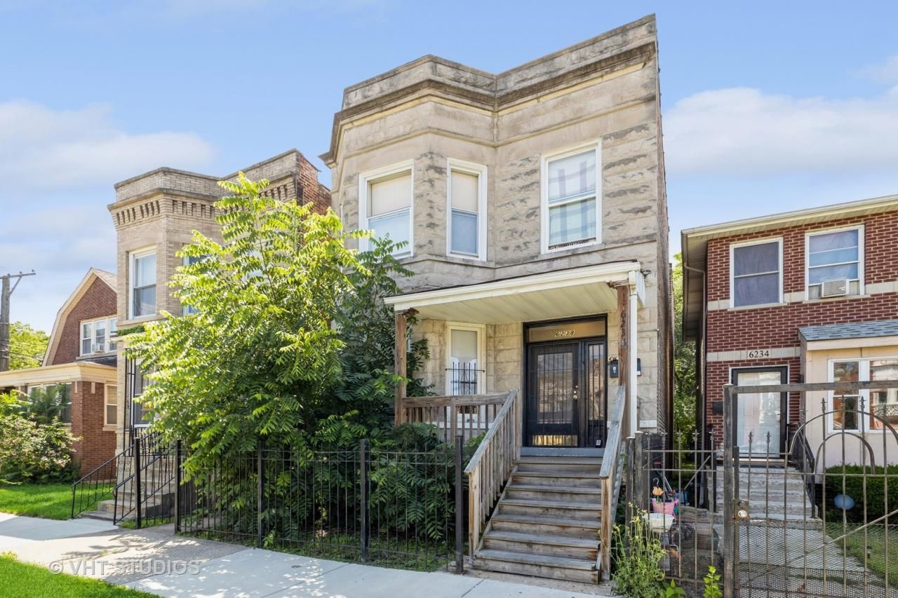 Spacious grey stone 2-flat building. One unit offers 3 bedrooms and the other 2 bedrooms plus a den. The decor is neutral and there is plenty of natural light. Both units have open floor plans. The first floor living room has a decorative fireplace and both have separate dining areas. The bedrooms are generous in size and there is plenty of closet storage. There are beautiful hardwood floors throughout. The eat-in kitchens are spacious and lead to private, open back porches that overlook the large, fenced backyard. Separate utilities. Both units are currently tenant occupied. This is a great opportunity for owner occupied and investor buyers.